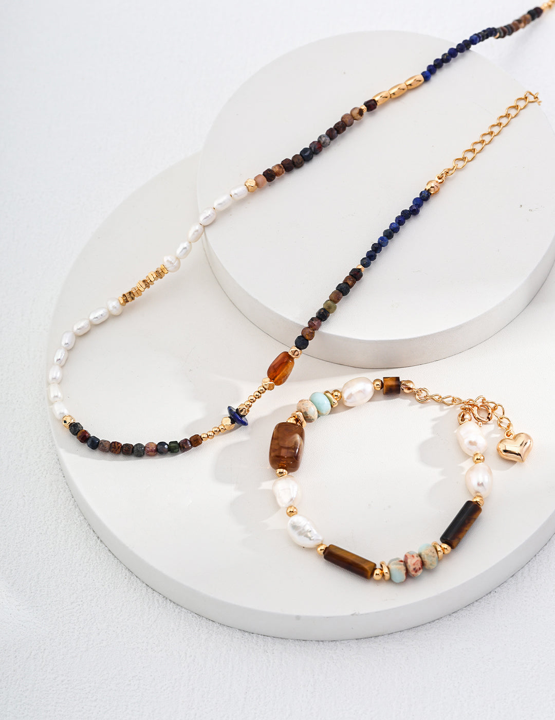 This bracelet was born from a quiet moment of reflection during a walk in the mountains. The Shoushan stone carries the soft breath of the earth, the pearls glow like gentle morning light, and the Tiger’s Eye feels like a protective gaze, quietly watching over you every day.